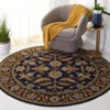 Whether grounding your furniture in a living area, or serving as a focal point in your dining room, this round wool area rug is more than a home accent, it's a testament to timeless style and cultural craftsmanship. Bring a touch of India's artistic legacy to your home with this splendid area rug, where every step is a soft reminder of world-class design and exceptional craftsmanship.