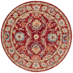 Enrich your living space with the traditional charm of our handcrafted area rug. This exquisite 6' X 6' Round rug is a blend of vibrant red and lush green hues, creating an inviting atmosphere in any room. With a 5/8" pile height, the rug offers a comfortable underfoot feel that is both luxurious and practical.