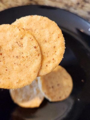 [This review was collected as part of a promotion.] These taste just like a full gluten cracker. Serve it up with some dips or on a charcuterie plate and it’s all you need. Add some grapes and you have everything you need for a light lunch or appetizer for any dietary needs. They are made with nuts but that means this gluten free gal has a crispy snacked for my plate too.