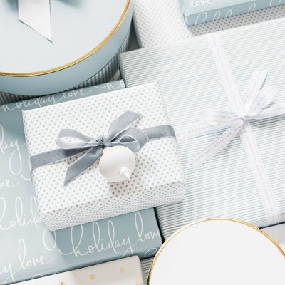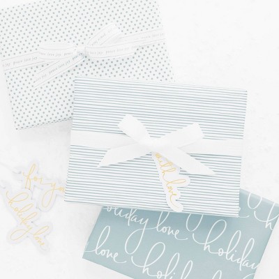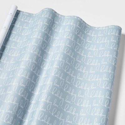 Sugar Paper™ exclusively for Target. The perfect gift deserves beautiful gift wrap. This extra-thick icy blue wrap is printed with white handwritten “Holiday Love.” Thoughtfully designed with a grid on the back to help you wrap your gifts effortlessly.