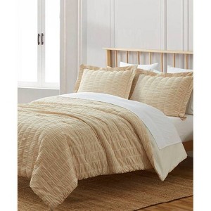 Blue Loom 3pc Full/Queen River Puckered Striped Jacquard Comforter Bedding Set Champagne: Machine Washable