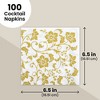 Blue Panda BLUE PANDA 100 Pack White & Gold Disposable Floral Paper Napkins, 6.5x6.5”, Napkins for Wedding, Birthday, Anniversary