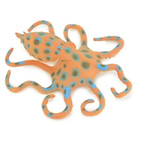 Blue Ringed Octopus, Educational, Hand Painted, Museum Quality, Realistic, Rubber Animal, Realistic, Diorama, Toy, Kids, 4 1/2 Inches. The Blue-Ringed Octopus (Hapalochlaena spp.) is a highly intriguing and venomous marine creature found primarily in the Pacific and Indian Oceans. Known for its distinct blue rings that appear on its body when threatened, this small but dangerous octopus has captured the fascination of marine enthusiasts and researchers alike. The blue-ringed octopus is often recognized by its bright yellowish skin and the vivid blue rings that become more pronounced when it is agitated. These creatures are not only visually captivating but are also known for their potent venom, which can cause paralysis and, in some cases, death. Found in shallow coastal waters, these octopuses typically inhabit coral reefs, tide pools, and rocky shorelines, where they prey on small crustaceans, mollusks, and fish. Despite their venomous nature, blue-ringed octopuses are generally peaceful and tend to avoid human interaction unless provoked. Their venom, which contains tetrodotoxin, one of the most toxic substances known, makes them particularly dangerous. The scientific fascination surrounding the Blue-Ringed Octopus lies in its incredible ability to change color and texture, an adaptation that helps it blend into its environment and avoid predators. Also referred to as "blue-ring octopus" or "blue ring octopus," this species has gained notoriety due to its role in various marine myths and its appearance in popular media. Conservation efforts have also been directed towards preserving the delicate habitats these creatures call home, as their populations are often threatened by human activity, including coastal development and pollution. The Blue-Ringed Octopus continues to be a symbol of both beauty and danger in the underwater world, offering both a cautionary tale and a marvel of nature's design. At Collectible Wildlife Gifts, we cater to a diverse clientele, encompassing families, friends, and educators. Our offerings have garnered the trust of professional organizations, including aquariums, zoos, and movie studios, who rely on our quality and educational value. Our extensive product line features a variety of items, ranging from plush sharks to educational resources showcasing animal growth cycles. Each product is designed not only to bring joy but also to serve as an effective tool for learning. Whether you€™re looking to inspire curiosity in a child or enhance an educational curriculum, our products spark interest and foster a love for the natural world. We believe that learning should be an adventure, and our gifts make exploring nature fun and engaging. With every item, we aim to create memorable experiences that encourage conversations about wildlife and conservation. Our plush toys provide comfort while igniting the imagination, and our educational materials promote understanding and appreciation for various species. Join us in celebrating the wonders of nature. Whether you€™re shopping for a special occasion or seeking educational resources for a classroom, Collectible Wildlife Gifts has something for everyone. Explore our collection today and discover the perfect gift that will delight recipients of all ages while nurturing their love for wildlife and learning. Let us help you make a meaningful impact with gifts that inspire and educate.