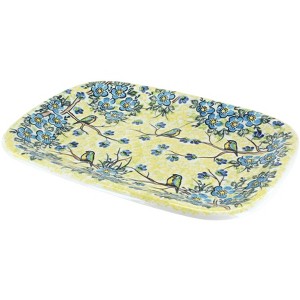 Blue Rose Polish Pottery Bluebird Garden Large Rectangular Serving Platter