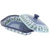Discover the perfect balance of beauty and practicality with this medium covered baker, designed for both baking and serving. Measuring 10.25" long x 8" wide x 2" high; 1.5" deep. The matching lid helps keep food warm while adding artisanal charm to your table. Each baker is handmade and hand-painted in Poland, reflecting centuries of tradition and showcasing vibrant patterns that make every piece unique. Crafted from high-quality stoneware and fired at high temperatures, it delivers even baking, excellent heat retention, and easy cleanup. Safe for the oven, microwave, dishwasher, and freezer, this dish blends timeless artistry with modern convenience. Whether youÂ’re preparing a weeknight dinner, serving guests, or adding to your collection, this medium covered baker brings authenticity, charm, and lasting durability to your kitchen.