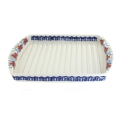 Bring versatility and timeless artistry to your kitchen with this baker, perfectly sized for a wide variety of recipes. Measuring 13.88" long x 11.38" wide x 2.75" high; 2.38" deep. Each piece is handmade and hand-painted in Poland by the artisans of Ceramika Artystyczna, a world-renowned pottery workshop celebrated for its rich tradition and exceptional quality. Decorated in vibrant, intricate patterns, no two bakers are exactly alike, turning every dish into a unique work of functional art. Crafted from durable, high-fired stoneware, this baker ensures even baking, excellent heat retention, and easy cleanup, all while withstanding years of regular use. Safe for the oven, microwave, dishwasher, and freezer, it blends authentic craftsmanship with modern convenience. From weekday dinners to festive gatherings, this baker is a beautiful and practical addition to any collection.