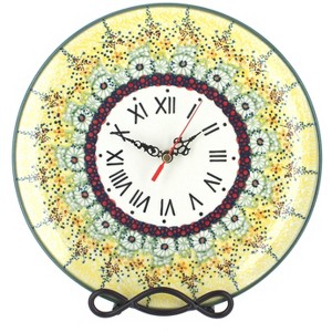 Charming and functional, these hand-painted plate clocks bring artistry and practicality together for any room in your home. Handmade by skilled artisans, each clock features intricate patterns and vibrant colors that reflect the tradition of Polish pottery, making every piece a unique work of art. Measuring 10 inches in diameter, the clock is large enough to be easily visible while still versatile enough to suit a variety of spaces, from kitchens and dining rooms to offices or entryways. The scalloped hour and minute hands add a touch of vintage elegance, while the soft ticking creates a warm, nostalgic feel without being disruptive. Designed for everyday convenience, the clock operates with a simple AA battery, making it easy to maintain while ensuring reliable function. Durable and double-glazed, it is not only practical but also a decorative accent that brightens your walls. Whether gifted to a collector or used to add a whimsical yet classic detail to your own home, this plate clock blends timeless charm with everyday utility.
