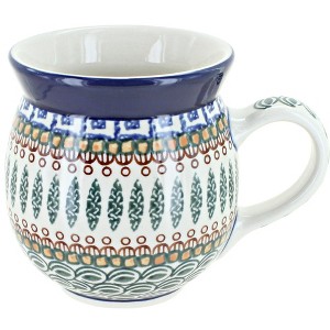 Sip your morning coffee, hot cocoa, and cozy teas from our durable ceramic mugs. A contemporary silhouette and flared lip offer a comfortable and stylish option while the glaze protects from coffee stains. Dishwasher safe for convenient cleanup. 4 inches tall and 16 oz. The Art of Polish Pottery, as we know it today, started as local folk art centuries ago in the German province of Silesia. The first known pieces of “Bunzlauer” stoneware dating back to the 16th century were crafted by hand and decorated with a folk art stamping technique using potatoes. Original designs were inspired by the peacock feather using the colors of cobalt blue, sage green and ferrous red. These designs and colors are still the inspiration for modern day patterns.Today, skilled Polish artists still individually handcraft and hand decorate each piece using small sponges to stamp each pattern and color. After the process of mixing ingredients, molding the pottery, applying the decorations and glaze, the pottery is twice fired. This process makes the pottery extremely durable, it will not crack or chip easily, and it is perfect for use in the microwave, dishwasher, oven and freezer. Along with our pottery, we have sourced a range of absolutely beautiful hand blown glassware from Poland. It is the perfect addition to your Polish Pottery Collection!