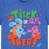 Blue's Clues & You! - Trick Or Treat - Toddler And Youth Short Sleeve Graphic T-Shirt - Step into a world of discovery with Blue’s Clues & You! graphic apparel, featuring playful and colorful designs inspired by the beloved preschool series. Showcasing Blue, Josh, Magenta, and other favorite characters, each piece captures the fun, learning, and curiosity that make the show so magical. Perfect for young fans and nostalgic parents alike, this collection brings clue-filled adventures to life in cheerful, kid-friendly style.