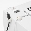 Engineered to route and secure peripheral cables to desks, walls, nightstands, or any flat surface to keep them in reach while preventing them from falling