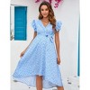 Product Name: BLUEMING Maternity Dress for Women Summer V Neck Dress with Flutter Sleeve Tie Wasit High Low Hem Dress Wedding Guest Dress, Light blue flower - S