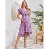 Product Name: BLUEMING Maternity Dress for Women Summer V Neck Dress with Flutter Sleeve Tie Wasit High Low Hem Dress Wedding Guest Dress, Purple flower - 2XL