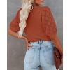 Product Name: BLUEMING Sweater Tops for Women Short Sleeve Crew Neck Summer Knit Shirt Eyelet Knit Elbow Sleeve Tops, Brick red - L