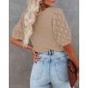 Product Name: BLUEMING Sweater Tops for Women Short Sleeve Crew Neck Summer Knit Shirt Eyelet Knit Elbow Sleeve Tops, Dark apricot - XL
