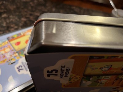 My grandaughter is a Bluey fan and enjoys playing with this. I like that the pieces are magnetic and easier to store in tin.