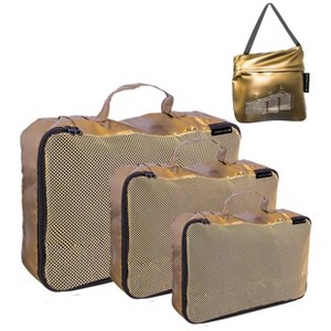 Boarding Pass Recycled Metallic Foldable & Packable Pouch Packing Cubes Set