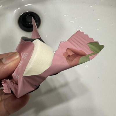 [This review was collected as part of a promotion.] This is the perfect gift for anyone! First there is this beautiful cardboard cylindrical tube. There are 6 tablets that are individually wrapped and smell like fresh cut rose! I opened the top and I was engulfed by the scent of roses. Amazing how accurate the scent was without other underlying scents. You can enjoy your shower while surrounded by an amazing garden scent. I received an incentive to write this review.
