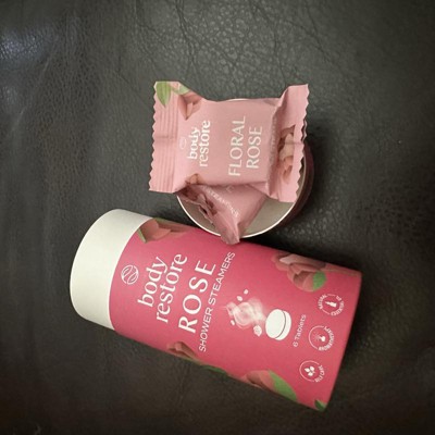 [This review was collected as part of a promotion.] This body restore shower steamer is so refreshing! My bathroom was instantly transformed into a spalike environment which was perfect after a long day at work then chasing after my toddler. The rose scent is strong but not over powering. I was surprised how it soon began to transition into a eucalyptus and citrus mixture towards the end. It is a delightful and unexpected twist. Will buy again! I received an incentive to write this review.