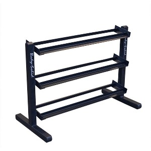 Keep your home gym organized and clutter-free with the 3-Tier Body-Solid Dumbbell Rack. Built from durable heavy-gauge steel with four-sided welded construction, this rack provides long-lasting strength and stability. It can securely hold a full set of hex or round rubber dumbbells, making it perfect for all types of strength training setups. The three-tier design offers easy access and efficient storage, while an optional plate horn allows you to store weight plates as well. Backed by the Body-Solid Forever In-Home Warranty, this rack is a reliable addition to any fitness space. Dumbbells are sold separately.
