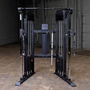 The Body-Solid GFT100 Functional Trainer with 210 lb. stack is a high-performance, space-saving strength training system designed for home gyms, garage gyms, and fitness facilities. Built with heavy-duty 11-gauge steel, it features a 1:2 weight resistance ratio and dual adjustable pulleys for maximum versatility. This functional trainer supports a wide range of exercises including presses, squats, rows, curls, and core movements for a complete full-body workout. It includes premium attachments like aluminum stirrup handles, a triceps rope, a chin & dip belt, and a double swivel bar for endless training options. The integrated chinning bar and optional stack shrouds add extra functionality and safety. Durable, sleek, and compact — it’s the perfect centerpiece for any serious training setup.