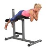 The Body-Solid Roman Chair and Back Hyper Extesion specializes in developing the lower back, and also target the gluteal muscles, hamstrings and abdominals. The Roman Chair is made from heavy-gauge steel, with thick, double-stitched DuraFirm pads and oversize 8" foam rollers that adjust vertically and horizontally to fit all users.
