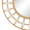 - •Wall mirror for decor featuring a round reflective glass panel and a brown natural bamboo frame with a geometric pattern