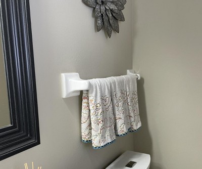 We considered if we should get this due to the price being a bit high for a towel but it truly adds the design splash we wanted for our bathroom! It is very well made and it comes with a little loop that we can use to hang the towel! Love!