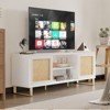 Boho Rattan TV Stand for 65 Inch TV, White & Gold Media Console with Marble Finish, Entertainment Center with Doors & Shelves for Living Room - 1 of 4