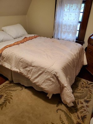 Cute 3 piece bedding set. The bronze color is really more of a terracotta pink/orange. I would think bronze as more of a reddish brown. But anyway, the neutral cream complements the “bronze” nicely. It was described as a “boho” print, I don’t know that I’d describe it that way. It’s got small “bronze” triangles against a cream background on one side, and then the other size is the “bronze” color with little line designs. Reminded me of kind of a more abstract than boho vibe. But anyway, overall, the comforter is soft and warm. The shams are eh. They felt more like pillow cases to me, I prefer a sturdier fabric for shams. The envelope enclosure is nice though. The size was listed as full/queen. I used it on my queen size bed in my guest room. I did take one star off for no bed skirt. I just think it’s a little short for a queen and leaves the sides of the box spring and exposed. Granted, a lot of new bed frames don’t have a box spring anymore, but it just makes it look a little unfinished on a bed with a box spring.