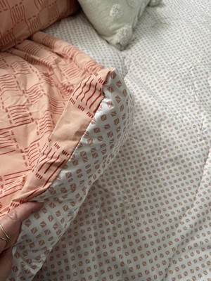 Transform your sleeping nook with this Boho Reversible Printed Comforter & Sham Set from Threshold™. This two-piece bedding set includes a twin comforter and a matching pillow sham for a cohesive look. Both pieces feature a reversible design with a different boho-inspired pattern on each side to instantly change the look of your bedscape. The lightweight cotton-polyester blend shell with soft polyester filling offers cozy comfort, and a six-inch envelope closure on the sham holds the pillow securely in place while still allowing for easy removal.