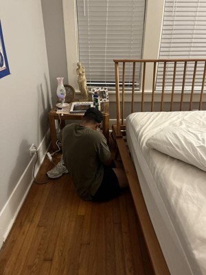 I wish I read the reviews before buying. The bed arrived a little chipped and slowly broke more and more over the past 2 years. I now have to hire a handyman to fix it because my headboard randomly snapped on the side. Aesthetically pleasing but not made to last, unfortunately. Going to do what I can to keep it around!