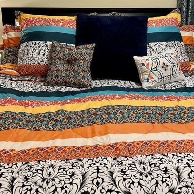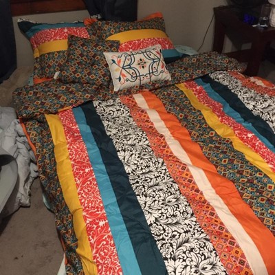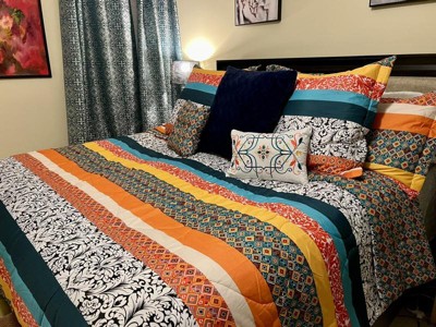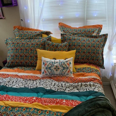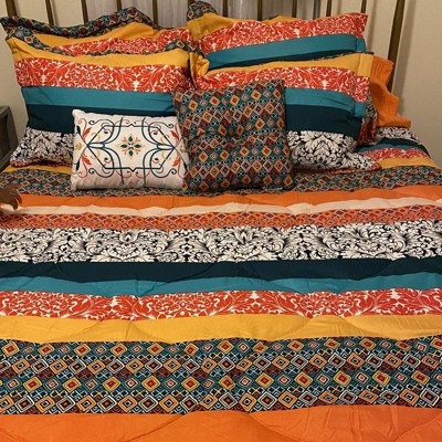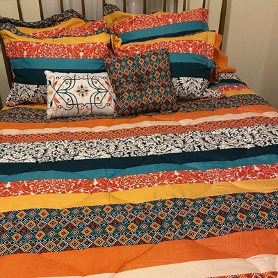 Lush Décor 5pc Twin/Twin Extra Long Boho Stripe Reversible Comforter Set Turquoise Blue/Tangerine: Polyester, OEKO-TEX Certified
