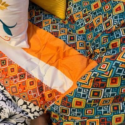 I love the colors it’s especially right now during winter something nice to brighten the foggy days. Accented with orange fitted sheets will fit right into the summer too