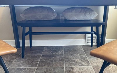 Our first table came with cracks and dents. Returning/exchanging wasn’t difficult but it wasn’t quick since the table is very heavy. Our second table still came with cracks underneath where it slides open to insert the leaf. We won’t be using that so we decided to keep it. Afterwords assembling it I noticed a tiny dent on top but it’ll be covered by placemats or runners. So again; not a dealbreaker. The table feels very solid. The leg height is adjustable. The tabletop wipes clean, its a nice satin finish. For extra hidden seating our bench fits perfectly underneath. Our bench and chairs are also from Target. The chair height left enough room to cross my legs under table. I am happy with the outcome. But if our second table arrived in the same condition as the first, we’d return for a full refund.
