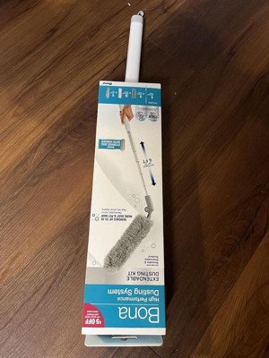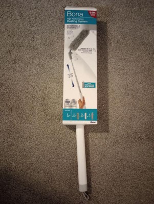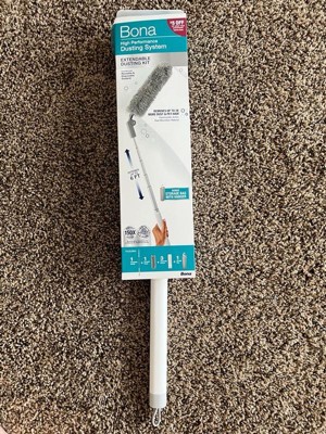 [This review was collected as part of a promotion.] I love this Bona Dusting System. I recently moved into a place with very high ceilings and this is perfect! It extends to just the right hight that I need. It is super durable and sturdy so this thing will last a long long time. It also comes with a storage bag to keep it compact and easy to store! It comes with a a couple disposable dusting heads and also a fabric one. It picks up dust and small stuff well!!