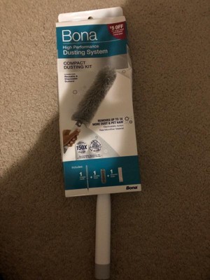 The Bona dusting kit is a versatile and effective cleaning tool that excels in reaching high and tight spaces, making it ideal for homes with high ceilings or intricate furniture. Guests appreciate its durable construction, eco-friendly reusable duster, and the convenience of having both reusable and disposable options. The extendable handle and machine-washable pads enhance its usability, ensuring a thorough clean without the hassle of dust flying around. This product is a great addition to any cleaning routine.