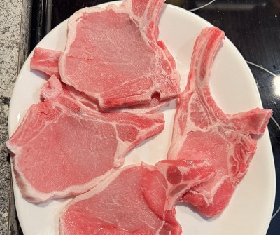These pork chops are good except they’re too thin so I overcook them just because they’re so thin so when you have them that then you try to get hungry and you want to eat more of them so they end up going fast