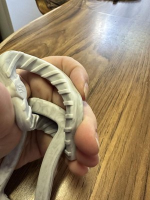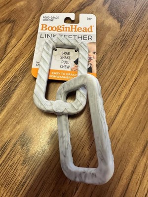 [This review was collected as part of a promotion.] This BooginHead Link Teether is made from food-grade silicone, by a business owned by women. It doesn’t come apart and is safe for baby to pull on, chew on, bend, shake, and grab. It’s gender neutral in a grey and white marble color. It’s easy for the baby to hold on to as well. I really like this one.