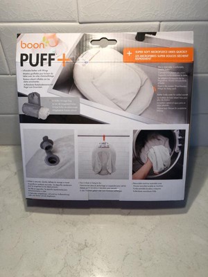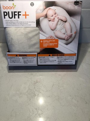 [This review was collected as part of a promotion.] Boon PUFF+ Inflatable Bather - Gray is easy to inflate/deflate, clean and store. This bather is soft and comfortable for the smallest of babies. The cover is washable and the bather fits in a large sink