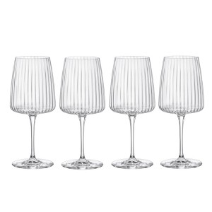 Product Name: Bormioli Rocco Exclusiva Merlot Glasses, Set of 4 - 18 Oz. Ribbed Long Stem Star Glass Goblets with XLT Reinforced Stems - Dishwasher Safe