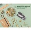 [This review was collected as part of a promotion.] One-Finger Spring-Powered Technology: Enjoy fast and hassle-free stapling, 80% easier than standard staplers, with the simple press of a finger. Jam-Free Performance: Keep your paperwork organized and efficient at school, work, or your home office. Fastens Up to 25 Sheets: Securely binds documents effortlessly using Bostitch Premium Standard Staples (1901). Lightweight and Compact: Designed for convenience, it's easy to hold and perfect for on-the-go use in a backpack or travel bag. Built-In Staple Puller and Storage: Keep your workspace organized and have staple removal at your fingertips. Eco-Conscious Design: Crafted from 70% post-consumer recycled plastic, making it an environmentally friendly choice for your office. Built-in remover for convenient staple removal Hidden staple storage Stands horizontally or vertically to save desk space