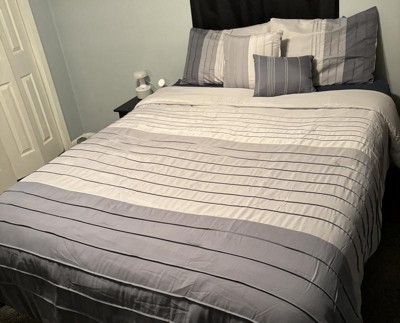 4pc Twin/Twin Extra Long Boston Pleated Colorblock Comforter Bedding Set - Gray: OEKO-TEX Certified, Includes Decorative Pillows