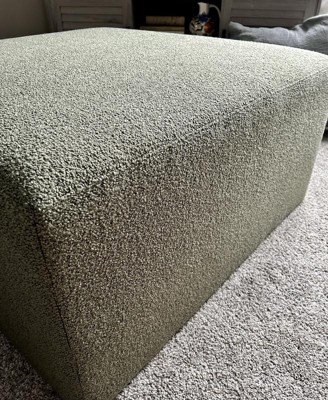 Boucle Upholstered Square Cocktail Ottoman in Olive Green by Hearth & Hand™ with Magnolia is really nice. The coloration and design of this ottoman is great. I love the rich olive green coloration and how nice and big it is. Great for resting legs on it. It is nice and sturdy, firm but yet soft and comfortable. Absolutely no assembly required other than placing in desired location which was nice! The ottoman isn’t to heavy or hard to carry either. I would highly recommend!