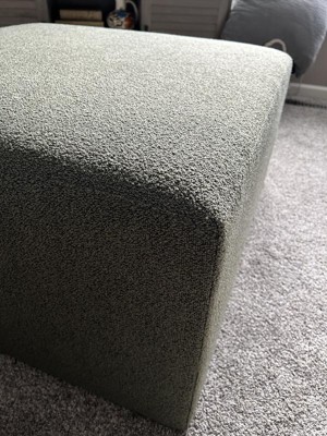Just got the olive green boucle ottoman and its perfect. Not too heavy, so its easy to slide around and position. Good to sit on too.