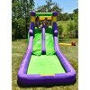 Some might say ice cream and ice packs but we have a better solution for the summer heat - our Double Water Slide with Splash Pool! With two adjacent slides and a 7.9"-9" splash pool, relief from the hot summer sun is only minutes away. [Specification] Inflated size: 20 ft L x W 7 ft W x 8.5 ft H, Package includes: water slide, blower, carry bag, stakes, repair kit and instruction. Weight limit: Max weight: 200 lbs, Max individual weight: 100 lbs. Max number of kids: 2. Easy set up and take down, inflates in less than a minute. Perfect for outdoor use. Carry bag provides easy portability.