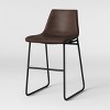 A: The barstool reflects a Mid Century decor style with an antique and distressed look.