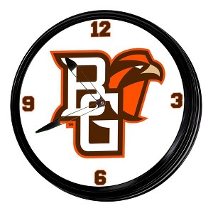 This premium Bowling Green State University Retro Lighted Wall Clock will be sure to add the finishing touch to any room in your home or office. This piece is injection molded and features a high-resolution, high gloss digitally printed face. Comes with an 8 foot power cord and an on/off pull switch for the light. LED illuminated. Hanging hardware and light bulb included. This is an officially licensed product of Bowling Green and made in the USA.
