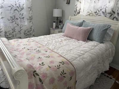 I love this quilt just wish it came in better packaging. It’s just tied ribbon around it to keep it together, free to get dirty but it’s a nice piece.