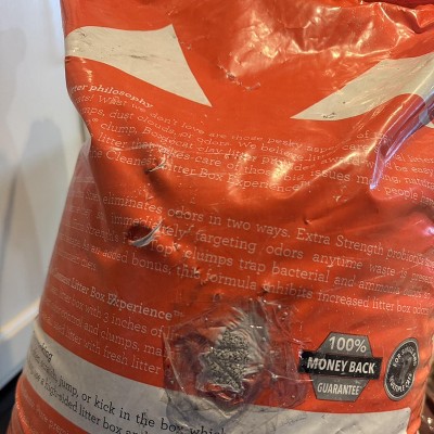 Arrived leaking and with a hole in the bag which someone had taped up. See the photo. Who tapes up a leaking bag and delivers it anyway? I have no way of knowing how much expensive cat litter leaked out before this was dumped on my doorstep. Target did not make it right. They wanted me to lug this bag back to the store if I wanted a replacement. Buyer beware. This item is not in good packaging for shipping and Target will do nothing about it.