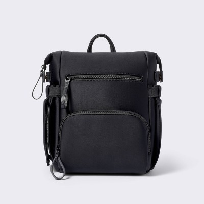 Traveling with baby will be a breeze with the help of this Boxy Diaper Backpack from Cloud Island™. Featuring a spacious zippered main compartment with mesh, slip and side utility pockets, this diaper backpack accommodates everything from diapers and wipes to rash creams and plush toys. It's designed with three outer pockets to easily access frequently-used items, while the side dispenser pockets allows quick retrieval of tissues and wipes. Its adjustable padded shoulder straps plus tote handles and a trolley sleeve allow for multiple comfortable carrying options.